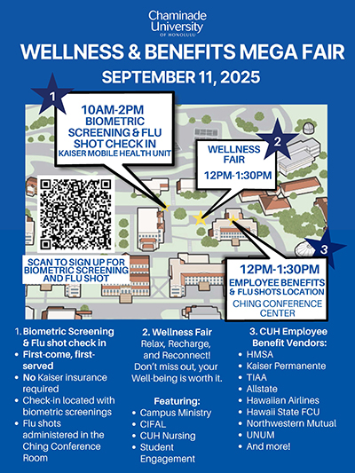 Open to the entire Chaminade community—join us for our campus-wide Wellness & Benefits MEGA Fair!